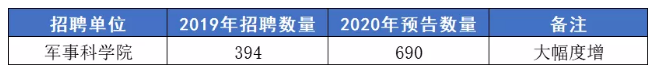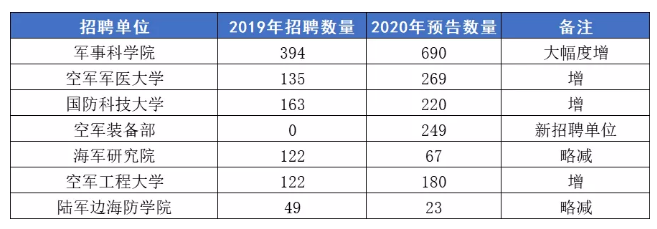此外,上圖的空軍裝備部是2020年首次發(fā)布文職人員招考預(yù)告信息,從而也說明了2020年軍隊文職招考會有一些新的招考單位加入進來。
