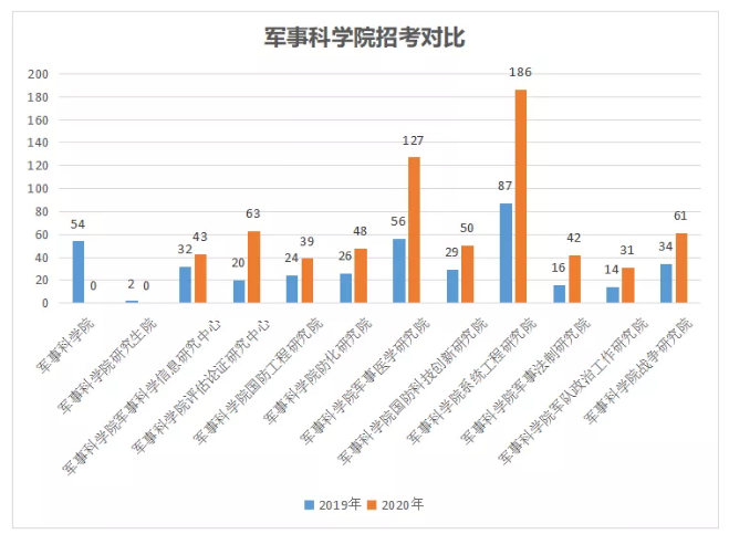 2019年和2020年軍事科學(xué)院各機構(gòu)招錄人數(shù)對比數(shù)據(jù)